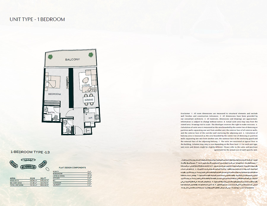 • 1 Bedroom: 736